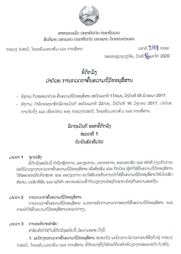 ຂໍ້ຕົກລົງ ວ່າດ້ວຍ ການກວດກາຄື້ນ ຄວາມຖີ່ວິທະຍຸສື່ສານ