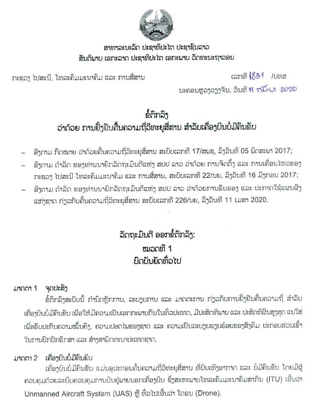 ຂໍ້ຕົກລົງ ວ່າດ້ວຍ ການຢັ້ງຢືນ ຄື້ນຄວາມຖີ່ ວິທະຍຸສື່ສານ ສໍາລັບ ເຄື່ອງບິນບໍ່ມີຄົນຂັບ