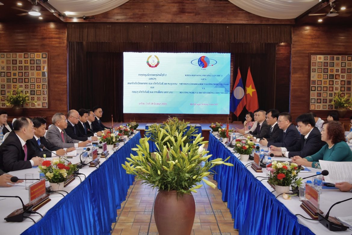 ການເຄື່ອນໄຫວ ຄະນະຜູ້ແທນກະຊວງເຕັກໂນໂລຊີ ແລະ ການສື່ສານ ເຄື່ອນໄຫວຢ້ຽມຢາມ ແລະ ເຮັດວຽກ ຢູ່ ສສ ຫວຽດນາມ ຢ່າງເປັນທາງການ ໂດຍ phommasy 02/06/2023 02/06/2023 20 ໂດຍອີງຕາມການເຊື້ອເຊີນຂອງ ປະທານສະພາບັນດິດ ວິທະຍາສາດ ແລະ ເຕັກໂນໂລຊີ ແຫ່ງ ສາທາລະນະລັດ ສັງຄົມນິຍົມ ຫວຽດນາມ, ຄະນະຜູ້ແທນ ກະຊວງເຕັກໂນໂລຊີ ແລະ ການສື່ສານ ແຫ່ງ ສາທາລະນະລັດ ປະຊາທິປະໄຕ ປະຊາຊົນ ລາວ ນໍາໂດຍ ທ່ານ ບັນດິດ ສຈ. ບໍ່ວຽງຄໍາ ວົງດາລາ, ກໍາມະການສູນກາງພັກ, ລັດຖະມົນຕີ ກະຊວງເຕັກໂນໂລຊີ ແລະ ການສື່ສານ ພ້ອມດ້ວຍຄະນະ ໄດ້ເດີນທາງ ເຄື່ອນໄຫວ ຢ້ຽມຢາມ ແລະ ເຮັດວຽກ ຢູ່ ສສ ຫວຽດນາມ ຢ່າງເປັນທາງການ ໃນລະຫວ່າງວັນທີ 27-31 ພຶດສະພາ 2023, ໂດຍໄດ້ຮັບການ ຕ້ອນຮັບ ອັນອົບອຸ່ນຈາກ ທ່ານ ບັນດິດ ສຈ. ເຈົ່າ ວັນ ມິ່ງ, ກໍາມະການສູນກາງພັກ ຄອມມູນິດຫວຽດນາມ, ປະທານ ສະພາບັນດິດ ວິທະຍາສາດ ແລະ ເຕັກໂນໂລຊີ ແຫ່ງ ສສ ຫວຽດນາມ ພ້ອມດ້ວຍຄະນະ. ໃນໂອກາດນີ້ ກໍໄດ້ມີກອງປະຊຸມ ພົບປະສອງຝ່າຍ ຄັ້ງທີ 2 ລະຫວ່າງ ສະພາບັນດິດ ວິທະຍາສາດ ແລະ ເຕັກໂນໂລຊີ ແຫ່ງ ສສ ຫວຽດນາມ ແລະ ກະຊວງ ເຕັກໂນໂລຊີ ແລະ ການສື່ສານ ແຫ່ງ ສປປ ລາວ ຂຶ້ນໃນຕອນບ່າຍ ຂອງໃນວັນທີ 28 ພຶດສະພາ 2023, ໂດຍການເປັນປະທານ ຮ່ວມຂອງ ປະທານສະພາບັນດິດ ວິທະຍາສາດ ແລະ ເຕັກໂນໂລຊີ ແຫ່ງ ສສ ຫວຽດນາມ ແລະ ລັດຖະມົນຕີ ກະຊວງ ເຕັກໂນໂລຊີ ແລະ ການສື່ສານ ແຫ່ງ ສປປ ລາວ ຊຶ່ງມີຄະນະ ຜູ້ແທນທັງສອງ ຝ່າຍເຂົ້າຮ່ວມ. ໃນກອງປະຊຸມຄັ້ງນີ້ ຄະນະຜູ້ ແທນໄດ້ຮັບຟັງ ການລາຍງານສະພາບ ການຜັນຂະຫຍາຍ ການຮ່ວມມື ໃນໄລຍະຜ່ານມາ ຂອງສອງຝ່າຍ ພ້ອມທັງປຶກສາຫາລື ການຮ່ວມ ມືໃນອະນາຄົດ ໃນທ່າມກາງບັນຍາກາດ ແຫ່ງຄວາມສາມັກຄີ ມິດຕະພາບ, ບົນຈິດໃຈຮັບຜິດຊອບສູງ ແລະ ຮ່ວມກັນພັດ ທະນາໃນຍຸກດິຈິຕອນ ໂດຍໄດ້ເປັນເອກະພາບ ຄື: ສອງຝ່າຍ ຍ້ອງຍໍຊົມເຊີຍ ແລະ ຕີລາຄາສູງ ຕໍ່ໝາກຜົນການ ຮ່ວມມື ລະຫວ່າງ ໜ່ວຍງານ ທີ່ຂຶ້ນກັບ ສະພາບັນດິດ ວິທະຍາສາດ ແລະ ເຕັກໂນໂລຊີ ແຫ່ງ ສສ ຫວຽດນາມ ແລະ ກະຊວງ ເຕັກໂນໂລຊີ ແລະ ການສື່ສານ ແຫ່ງ ສປປ ລາວ ໃນໄລຍະຜ່ານມາ; ເຫັນດີຊຸກຍູ້ ໃຫ້ສໍາເລັດ ຮ່າງບົດໂຄງການ “ກໍ່ສ້າງສູນຂໍ້ມູນ ແລະ ການສື່ສານ ທາງໄພພິບັດ (ແຜ່ນດິນໄຫວ) ໃຫ້ແກ່ ສປປ ລາວ” ເພື່ອລາຍງານ ຕໍ່ລັດຖະບານ ຂອງສອງປະເທດ ໃນກອງປະຊຸມ ຄັ້ງທີ 46 ຂອງ ຄະນະກໍາມະການ ຮ່ວມມືທະວີພາຄີ ລະຫວ່າງ ສອງລັດຖະບານ ລາວ-ຫວຽດນາມ ໃນປີ 2024; ຝ່າຍ ສສ ຫວຽດນາມ ໃຫ້ການຊ່ວຍເຫຼືອ ສປປ ລາວ ໃນການພັດທະນາ ຊັບພະຍາກອນມະນຸດ ດ້ານເຕັກໂນໂລຊີ ທີ່ມີຄຸນນະພາບ ສູງໃນຮູບແບບ ການຝຶກອົບຮົມ (ໄລຍະສັ້ນ ແລະ ໄລຍະຍາວ); ແລກປ່ຽນວິຊາການ, ນັກວິທະຍາສາດ ແລະ ພະນັກງານ ນັກຄົ້ນຄວ້າ; ແລກປ່ຽນ ແລະ ຮ່ວມມື ດ້ານການຈັດເກັບຂໍ້ມູນ ແລະ ລະບົບຄລາວ, ແນໃສ່ການກໍ່ສ້າງ ໂຄງການ ສູນຈັດເກັບຂໍ້ມູນ ແລະ ລະບົບຄລາວ ແຫ່ງຊາດ ຢູ່ ສປປ ລາວ ແລະ ການຮ່ວມມື ດ້ານອື່ນໆ ທີ່ສອງຝ່າຍ ໃຫ້ຄວາມສົນໃຈ. ຕອນທ້າຍຂອງກອງປະຊຸມ, ຄະນະປະ