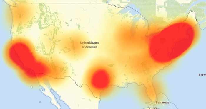 ຮູບທີ3 : ສະແດງການໂຈມຕີແບບ DDoS ບໍລິສັດ Dyn ເມື່ອທ້າຍເດືອນ ຕຸລາ 2016 (ທີ່ມາ- http://www.dailydot.com/layer8/dyn-ddos-twitter-reddit-east-coast)